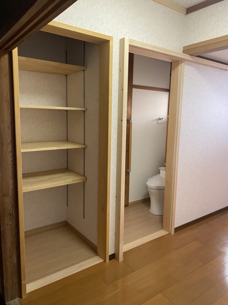 既存、廊下でトイレの入り口だった箇所をOPEN収納に。